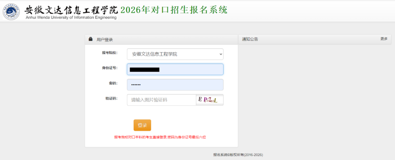 根据《安徽文达信息工程学院2026年面向中职毕业生对口本科招生章程》规定,报考我校对口本科的考生,须在2026年3月18日中午12:00—3月20日上午10:00,登录我校对口招生报名系统上传报名材料。考生报名资格审核通过后,须于3月21日上午8:00至3月22日24:00完成网上缴费,考试报名费标准为60元/生,缴费流程另行在我校招生信息网公布。缴费完成即视为报名成功,具体操作办法如下: