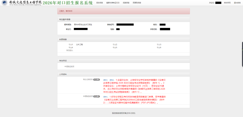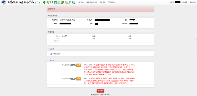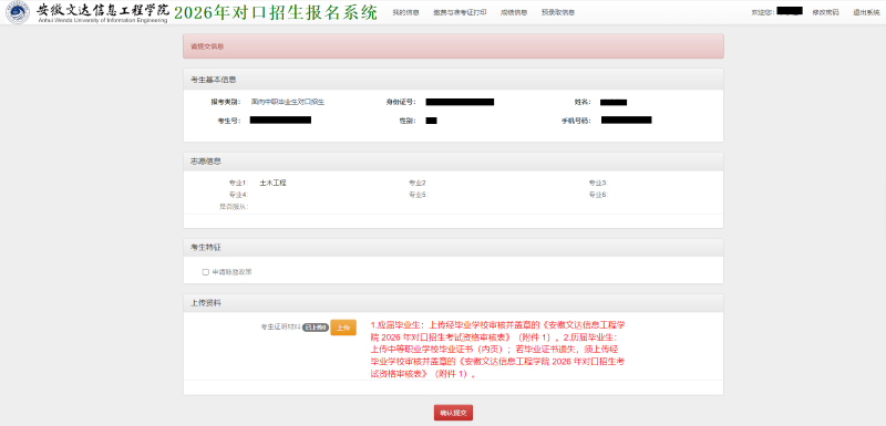 安徽文达信息工程学院2026年面向中职毕业生对口本科招生材料上传操作指引(内含:对口招生系统报名链接)