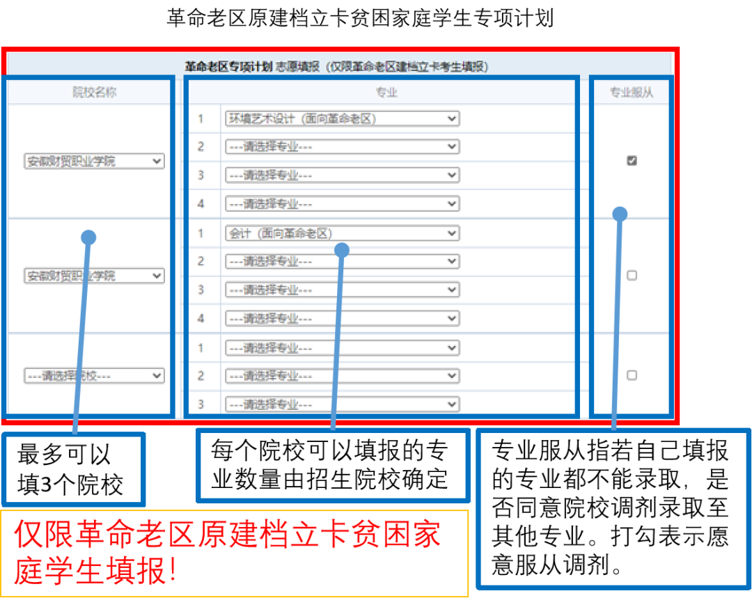 5. 志愿信息一旦提交,将无法修改,务必仔细阅读院校招生章程或咨询招生院校,了解院校、专业报考要求后再填报,以免志愿无效。